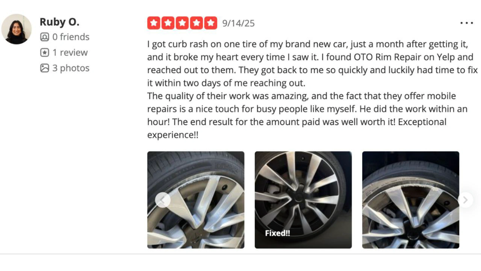 OTO was founded to provide high quality, affordable wheel repair services across the Bay Area. With years of experience, our technicians bring perfection to every detail.