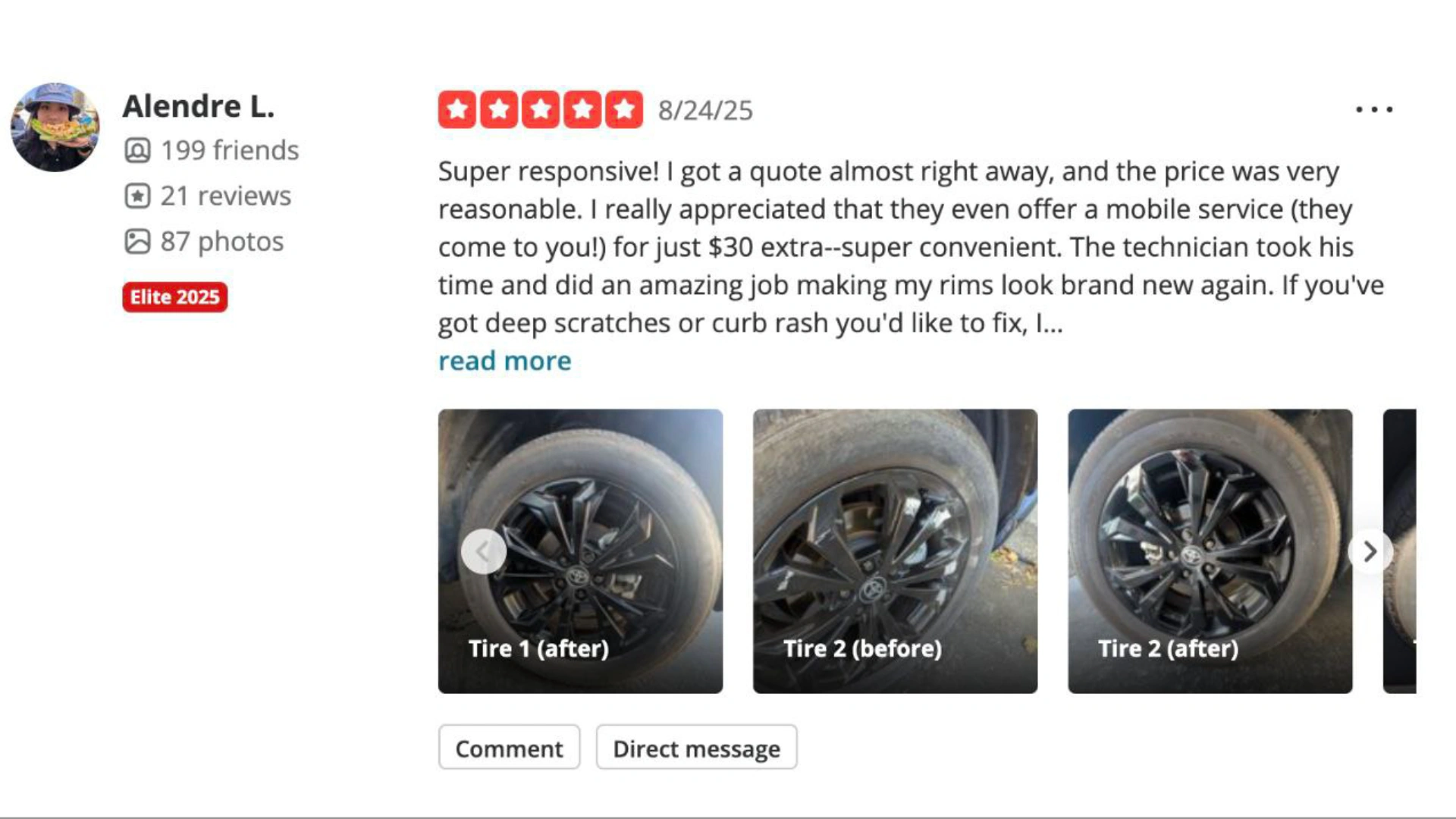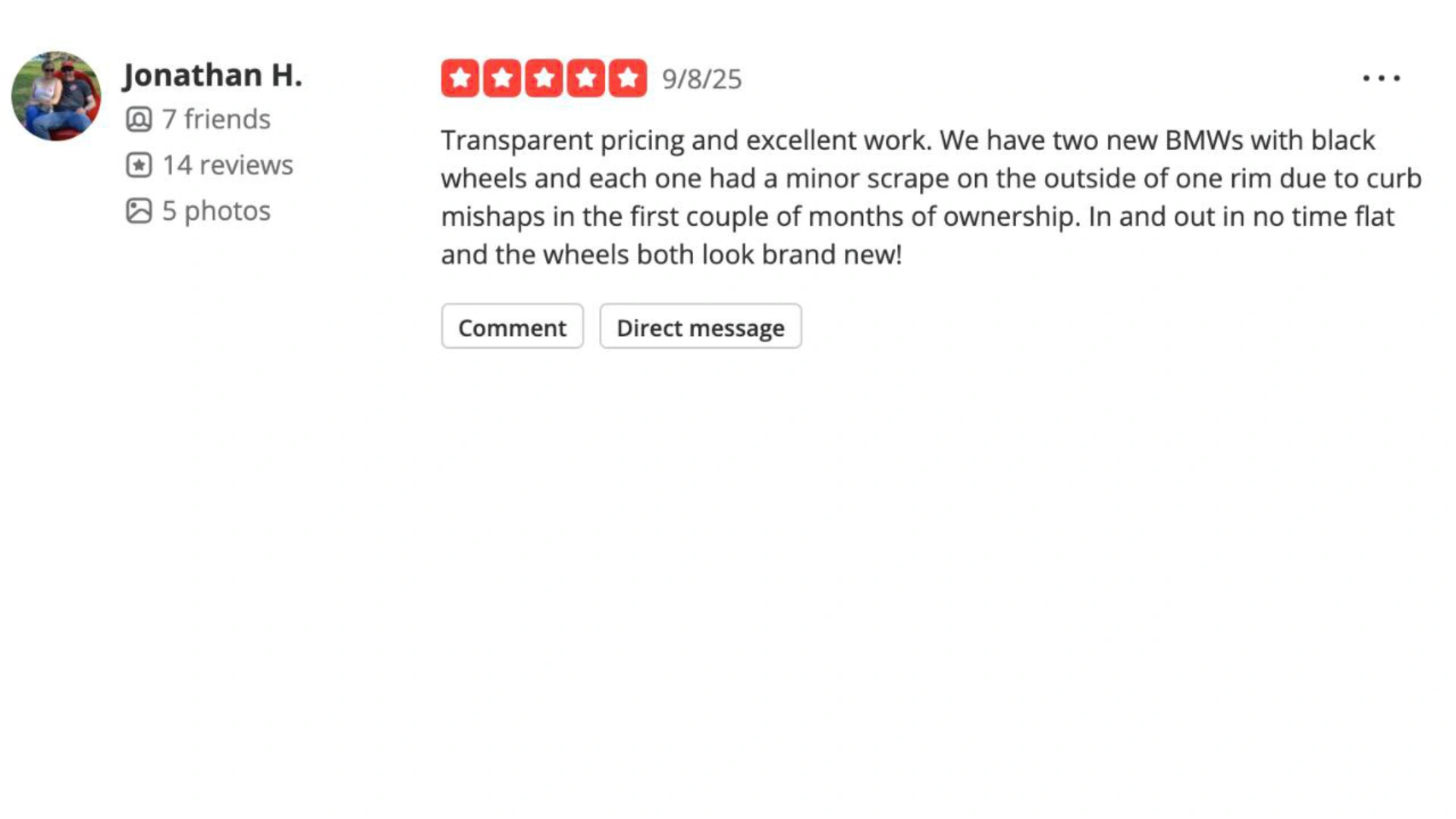 We’ve got you covered—mobile or at our shop! Whether it’s curb rash, scratches, or scuffs, we’ll make your wheels look like new without breaking the bank.